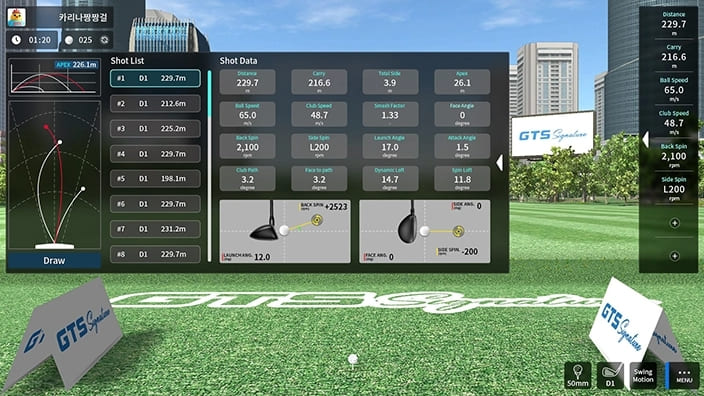 GTS Signatureは、精密なセンシング技術と実戦型グラフィックを備えたプレミアムゴルフシミュレーターであり、スイング分析からラウンドプレイまで対応するオールインワン練習ソリューションです。 超高速デュアルカメラセンサーが実際の弾道とインパクトを精密に再現し、フィールドそのままの臨場感あふれる練習環境を提供します。